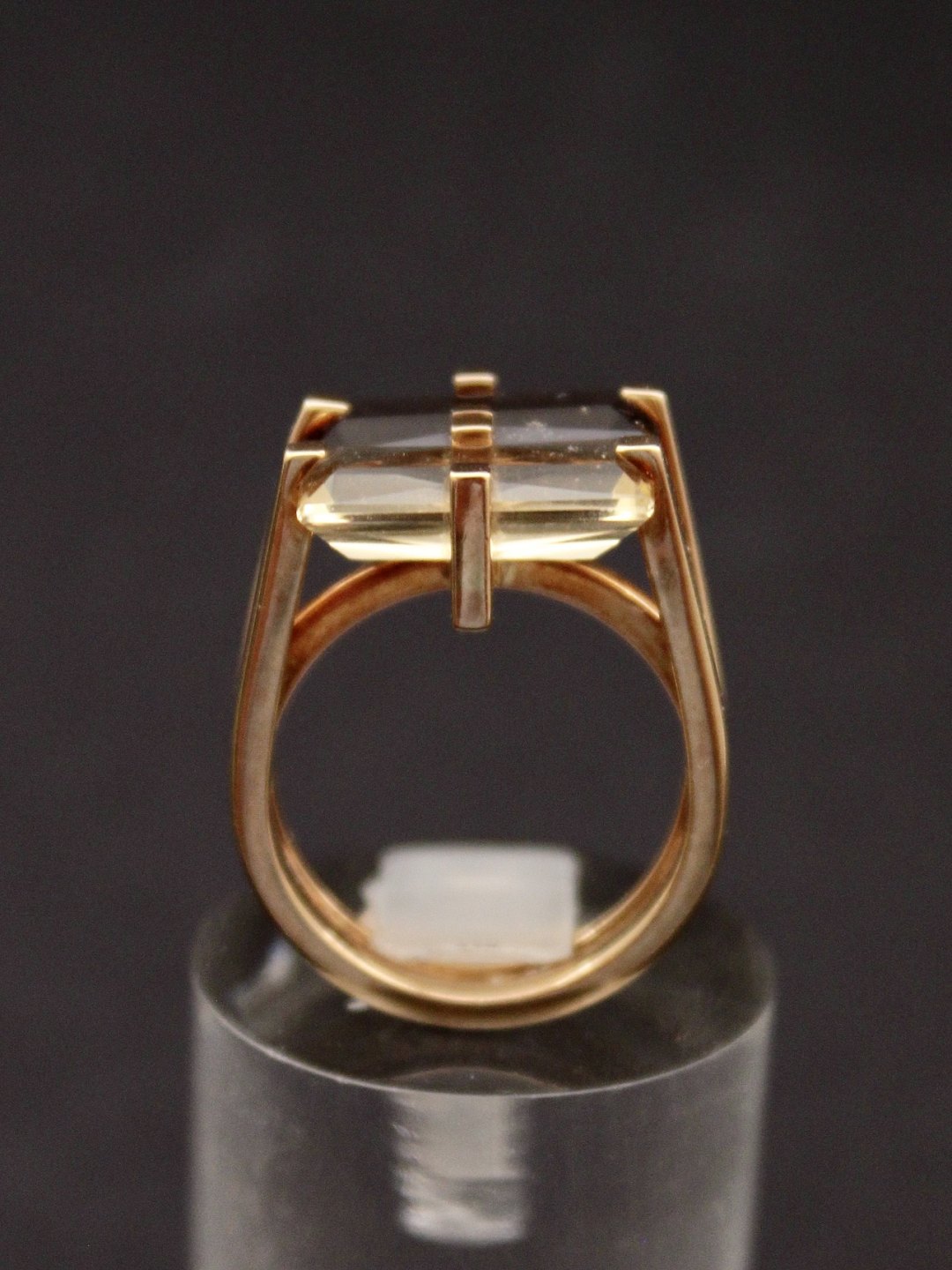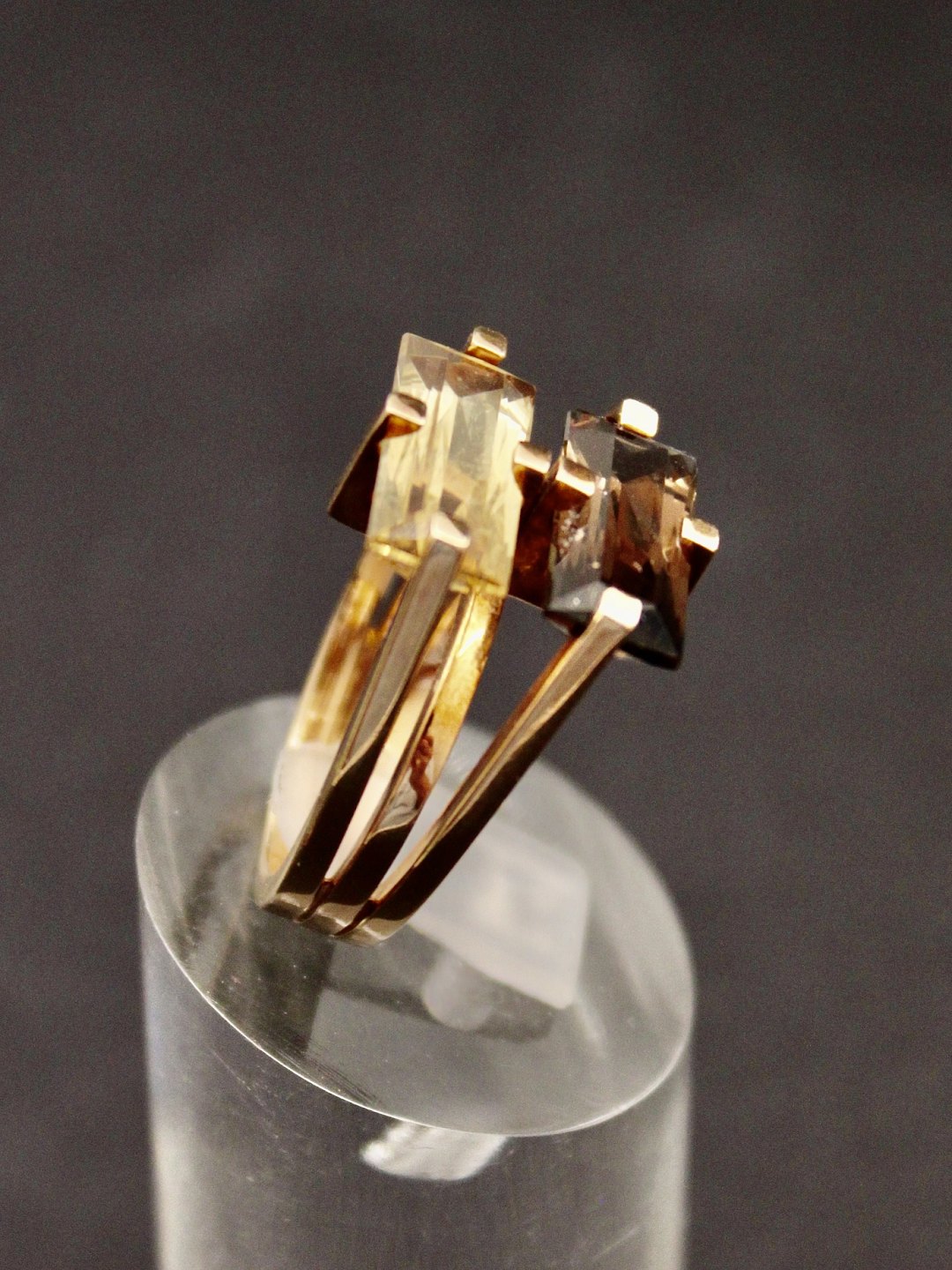 Beskrivelse: Jens Poul Asby for Christian Frederik Heise 14 karat guld design ring størrelse 53 med topaser år ca. 1970 flot stand emne nr. 539765