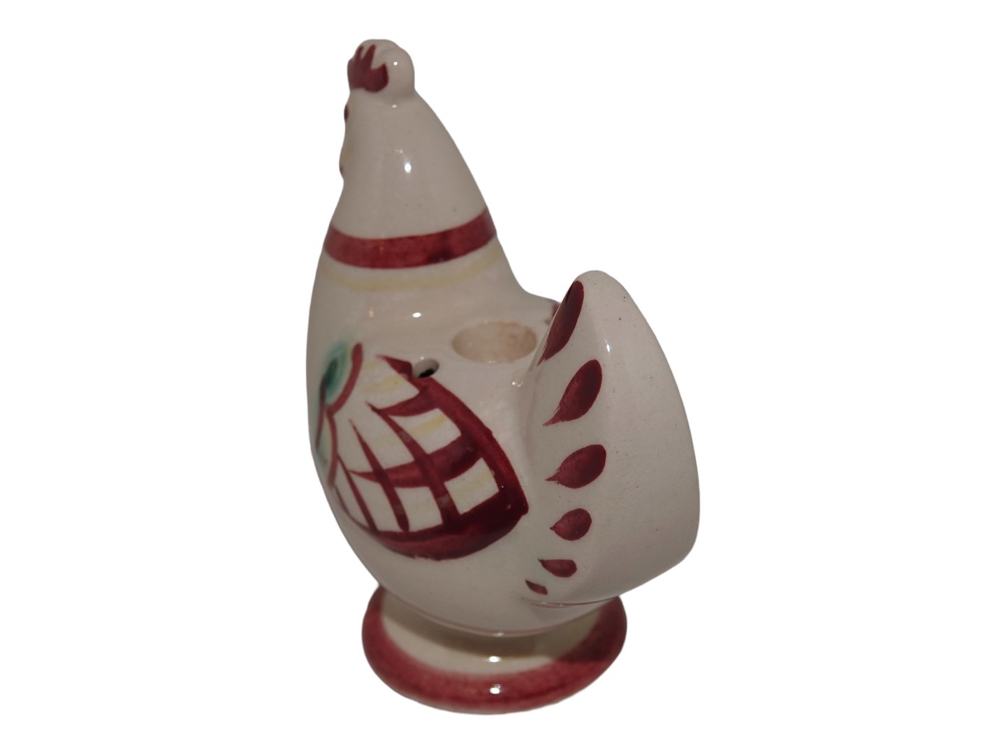 Beskrivelse: Sjælden Aluminia figur, Hane med plads til et stearinlys.