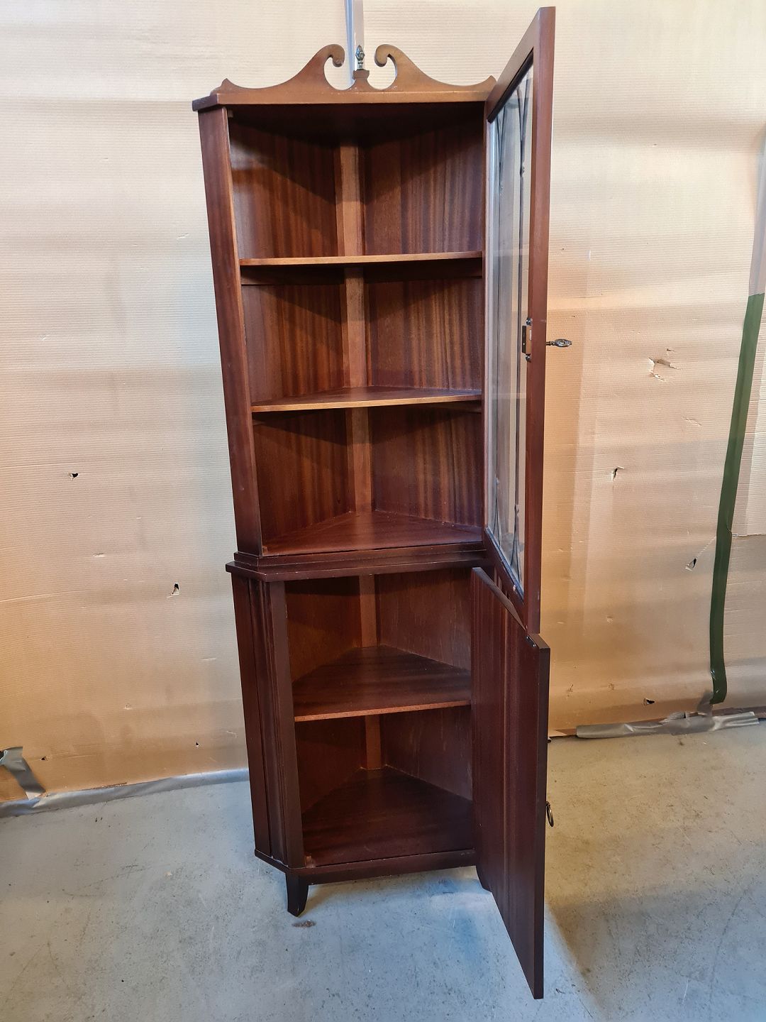 Beskrivelse: Hjørneskab i fineret mahogni, fra 2000erne.