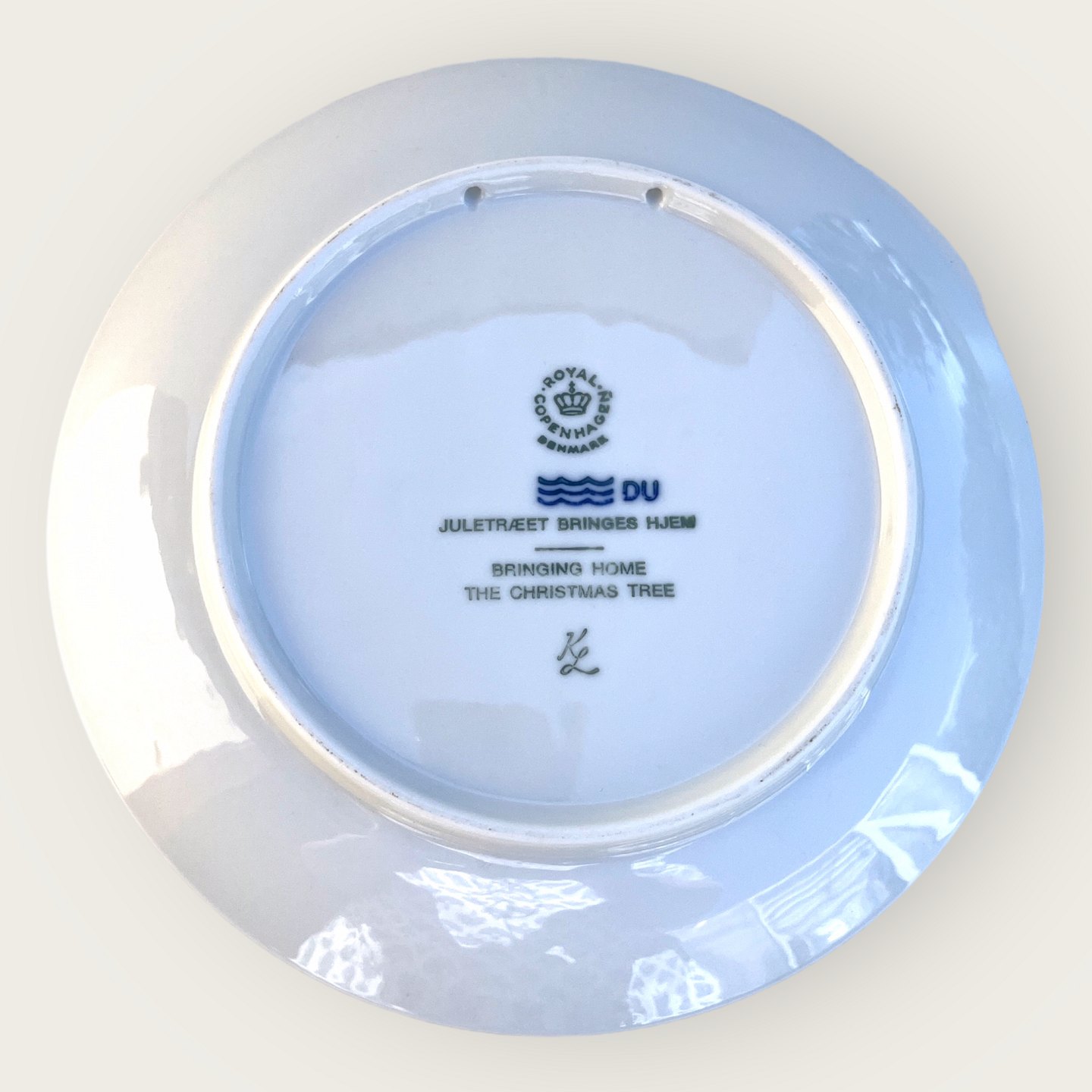 Beskrivelse: Royal Copenhagen, Juleplatte, 1980, Juletræet bringes hjem, 18cm i diameter, Design Kai Lange *Perfekt stand*