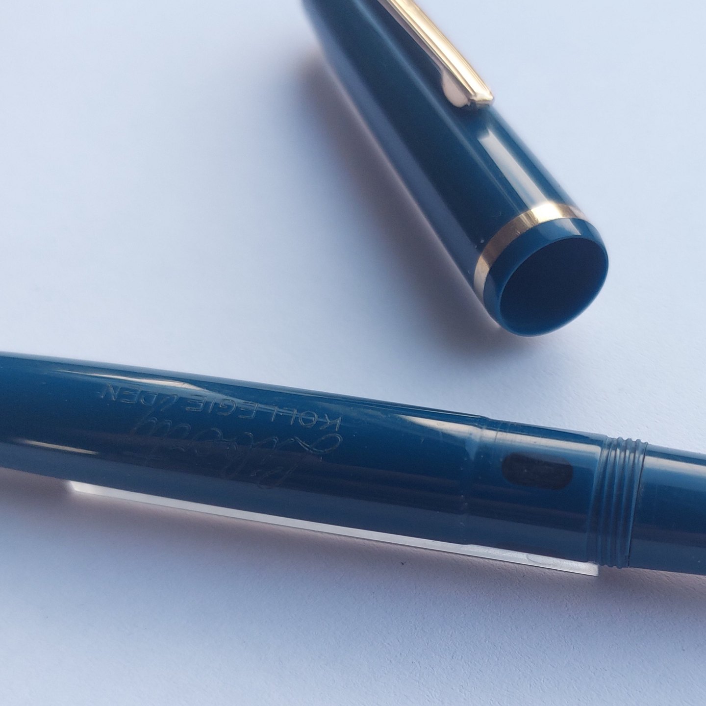 Beskrivelse: Blå Liberty Kollegie fyldepen med piston blæk-påfylder. Fremstår i rigtig god stand og klar til at blive brugt. Fremstillet i 1960erne. Ingen skader eller reparationer. L. 13 cm