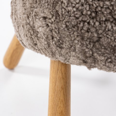 Clam chair in new lambskin (Sahara) and frame in oiled oak.