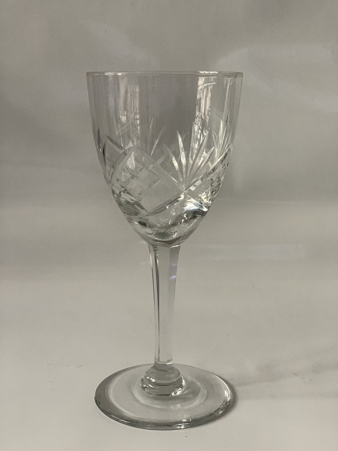 Slebet stilk med krydsslibninger på kummen. Produceret på flere svenske glasværker