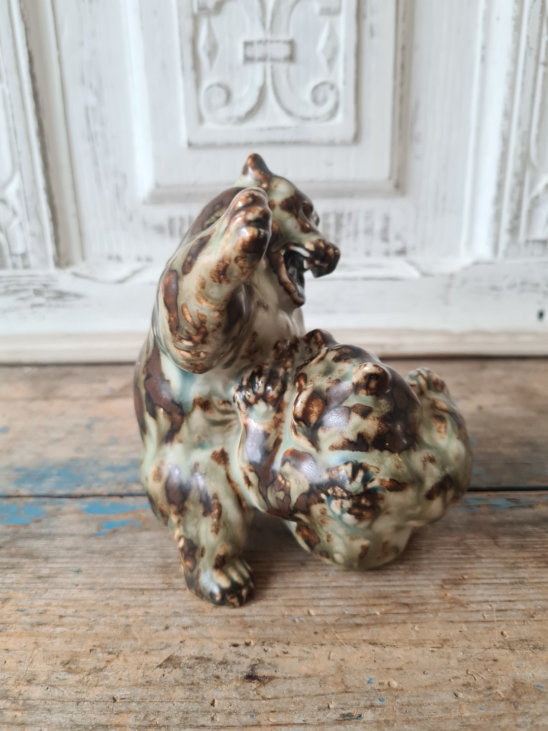 Description: Royal Copenhagen stone ware figure playful bear by Knud Kyhn