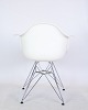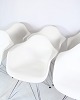 Description: Dining room chairs, Model DAR, designed by Charles & Ray Eames made by Vitra in white hard plastic with chrome frame.