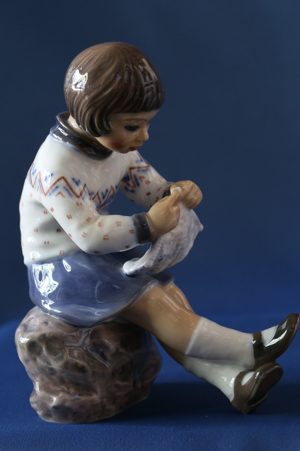 Beskrivelse: Dahl Jensen Figur, Pige der Strikker