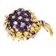 Beskrivelse: Italiensk safir- og diamantbroche af 18kt guld prydet med brillantslebne diamanter på i alt ca. 7,75ct og cabochonslebne safirer på i alt ca. 27,7ct
