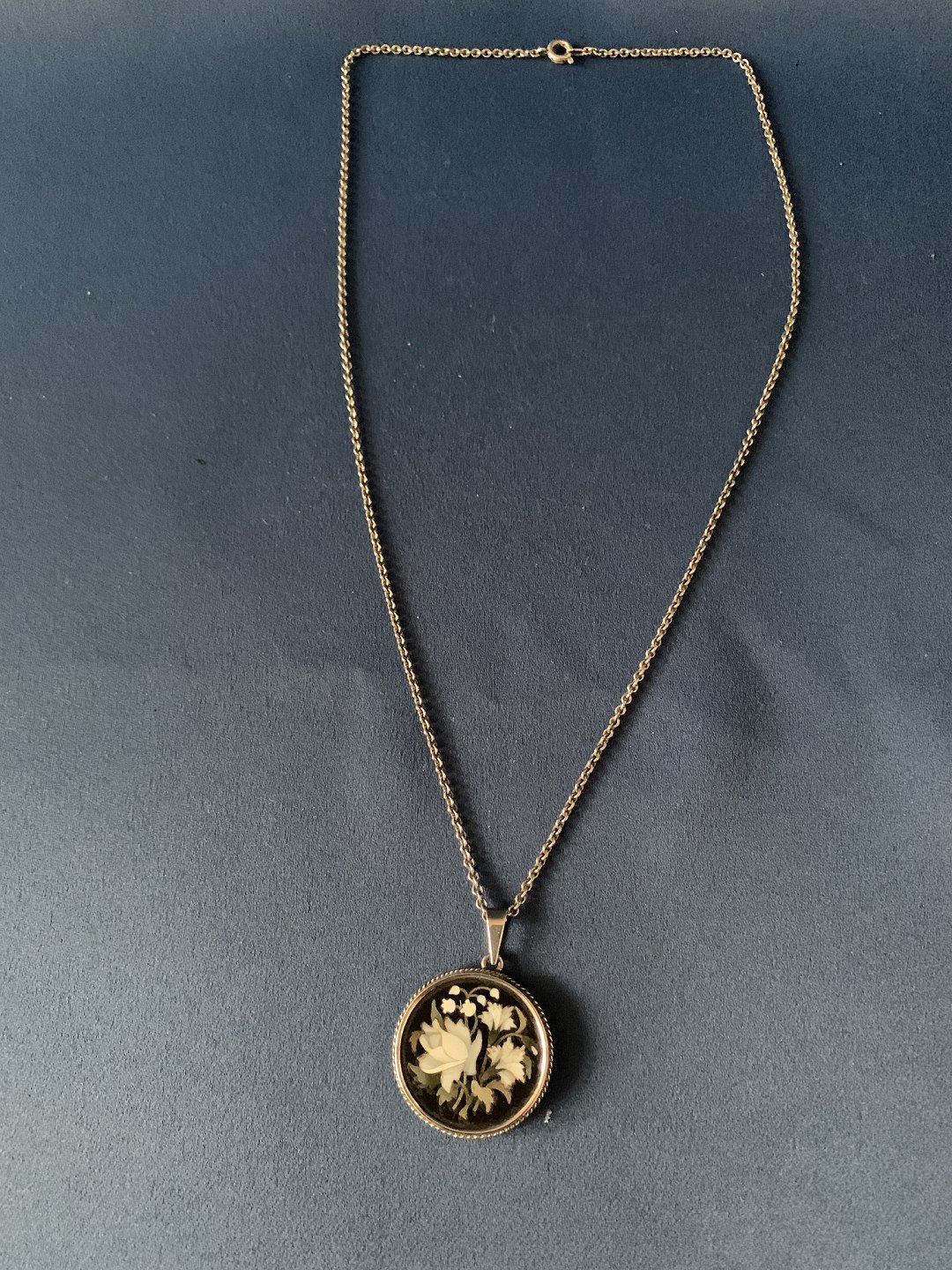 Beskrivelse: Smuk sølvkæde med vedhæng. Vedhænget er med indlagt blomstermotiv. Vedhængets flotte motiv og udførelse, gør dette smykke meget elegant at bære. Blomsterne i vedhænget er udført meget detaljeret.
