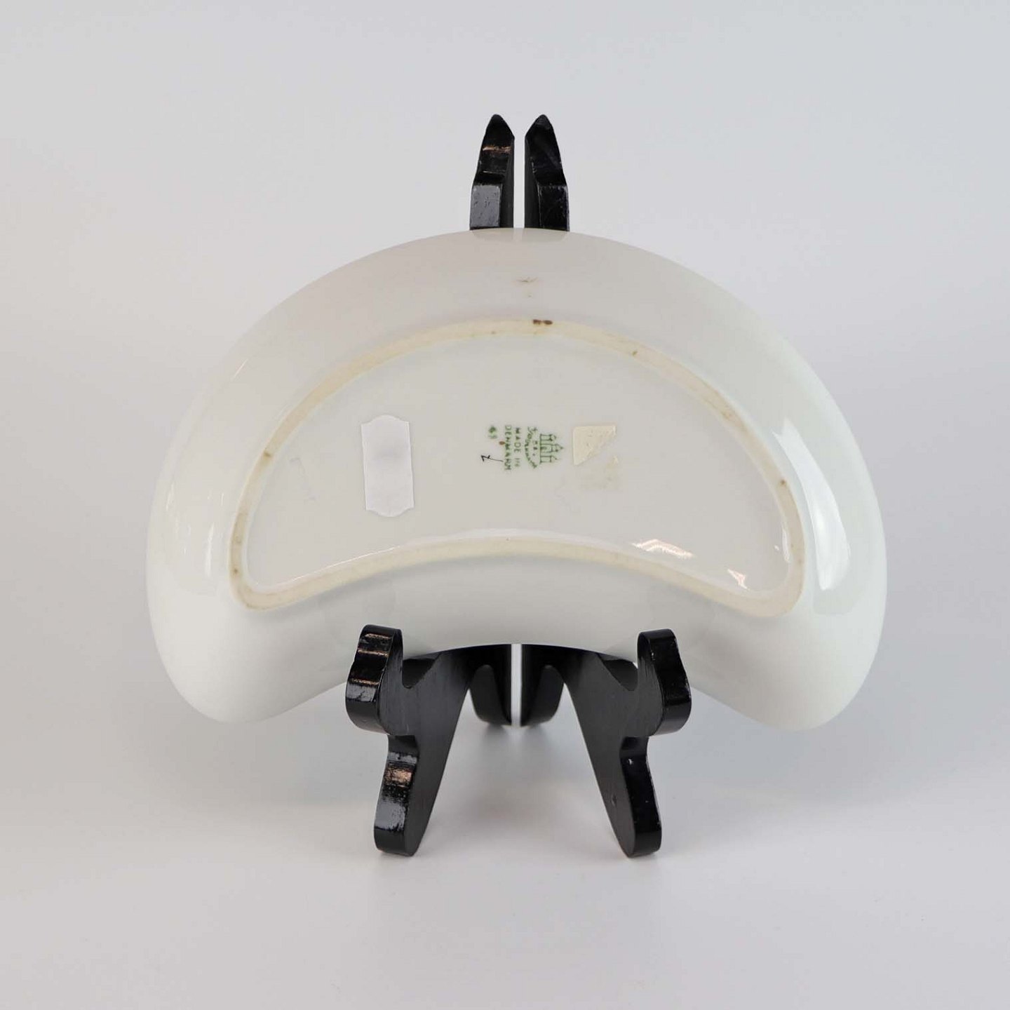 Beskrivelse: Halvmåneformet fad fra stellet Erantis. No 41