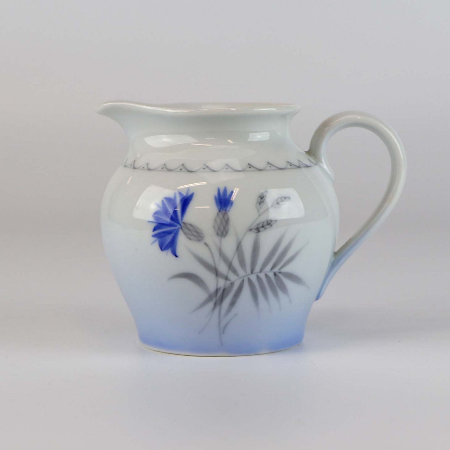 Demeter er af hvidt porcelæn med graduering af blå i kanten og med motiv af kornblomst