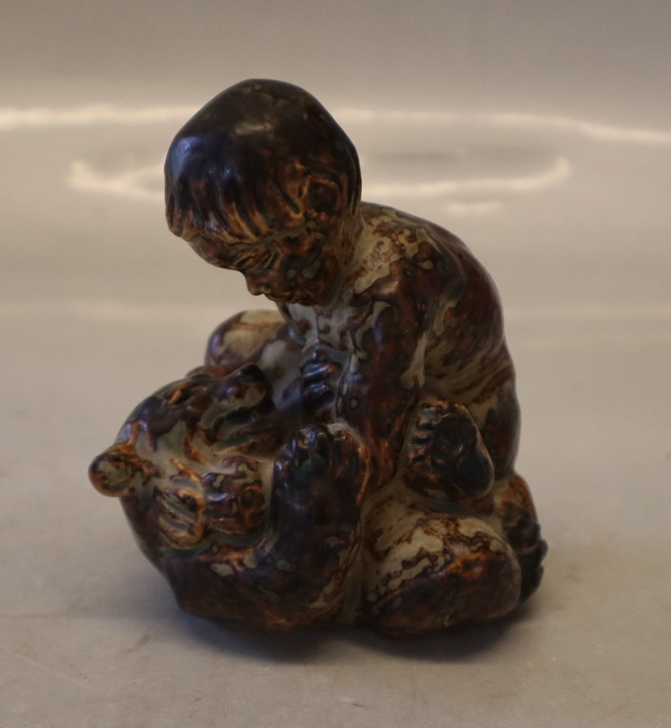 Royal Copenhagen stentøj 20245 Knud Kyhn Dreng kæmper med bjørn 11 cm I fin og hel stand