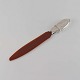 Beskrivelse: Brevkniv af ben. Top af sølv med motiv af kvinde med sværd og flag samt tre løver