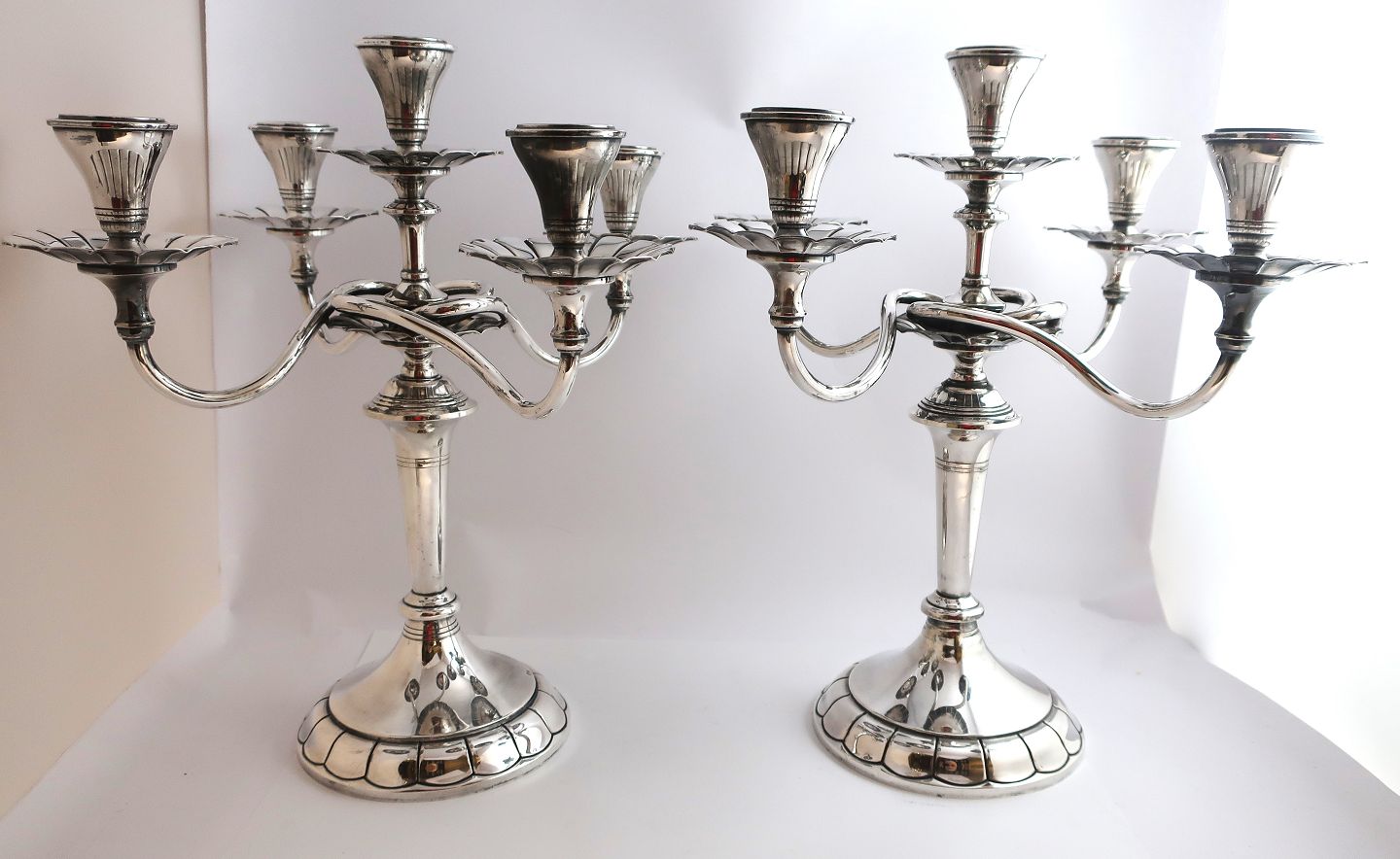 Spanien. Sølv 5-armede kandelabre (915). Højde 37 cm. Et par.