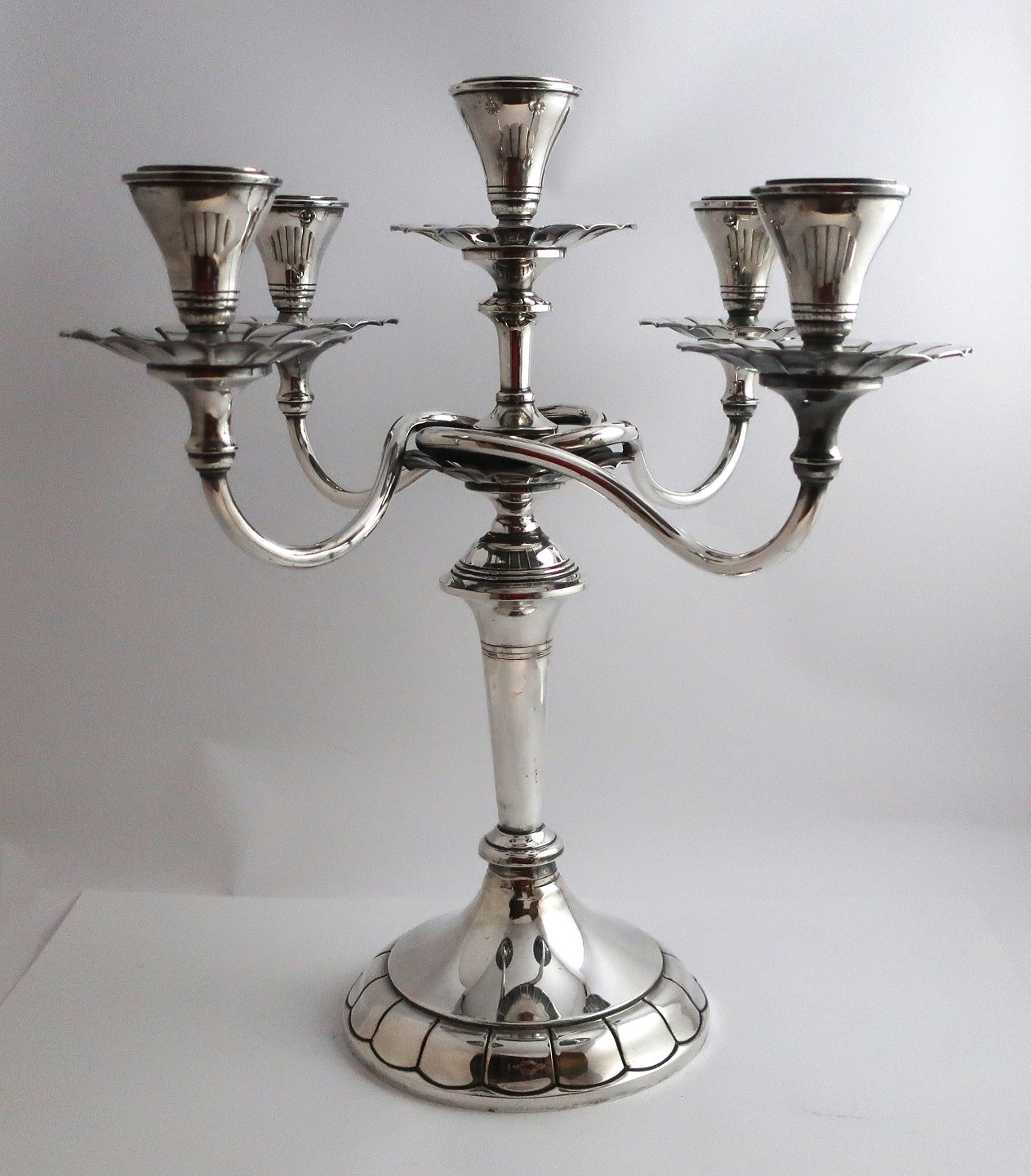 : Spanien. Sølv 5-armede kandelabre (915). Højde 37 cm. Et par.