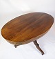 Beskrivelse: Rundt spisebord i mahogni fra senempire med 3 fødder fra omkring 1840'erne.