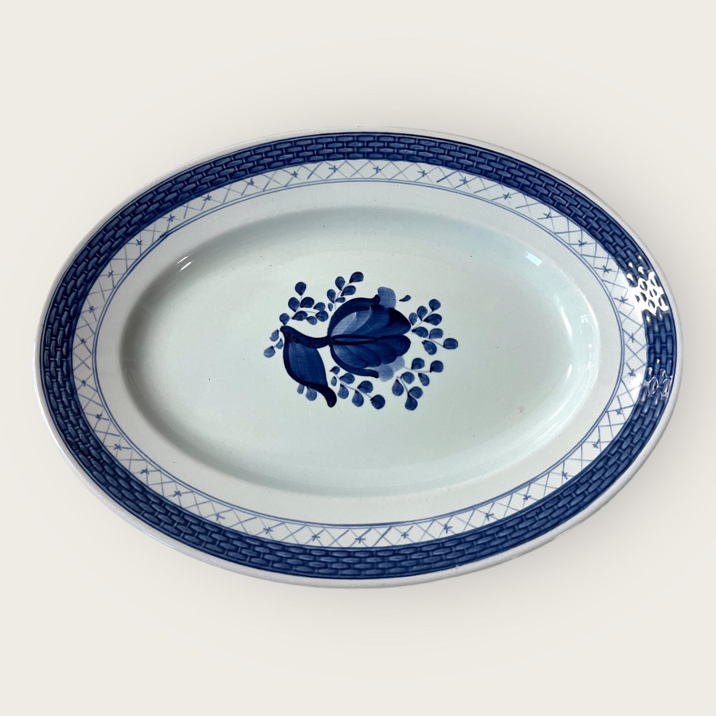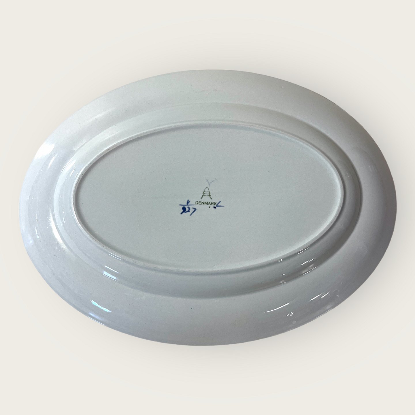 Beskrivelse: Royal Copenhagen, Aluminia, Trankebar, Serveringsfad #11/ 927, 27,5cm bred, 2 .sortering, Design Christian Joachim *Pæn stand med lidt krakeleringer under glasuren*