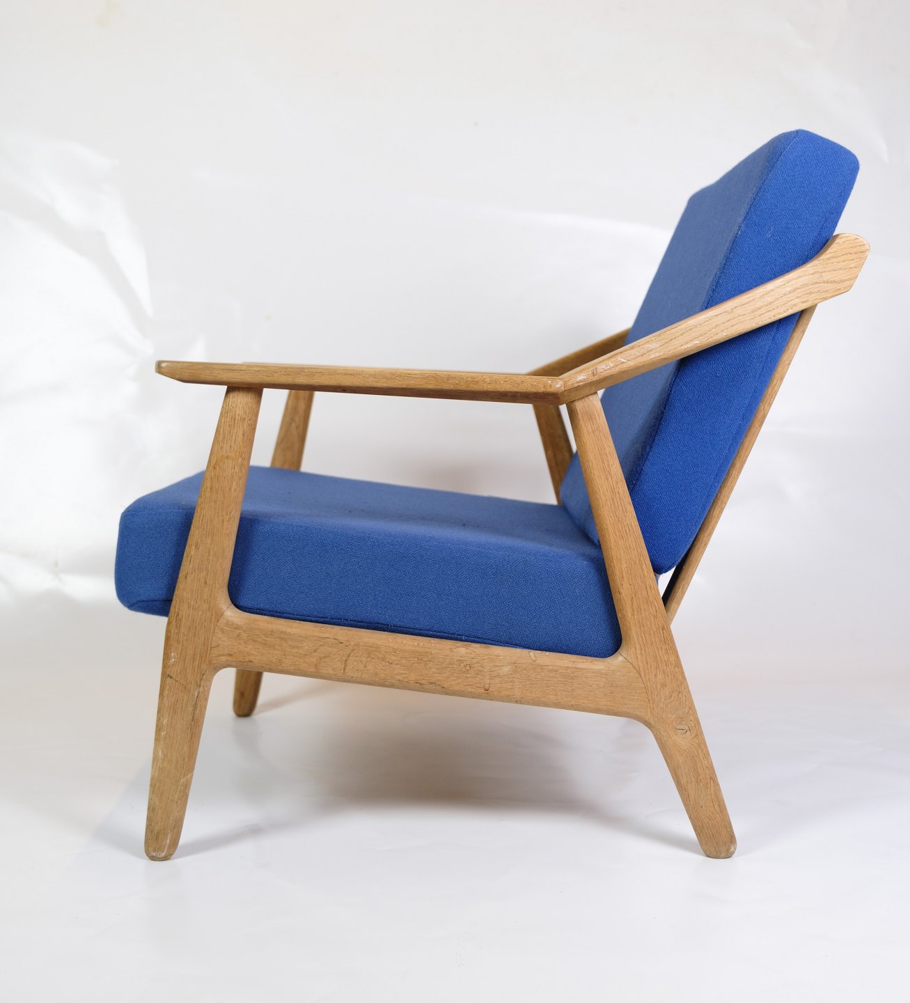Med sin enkle og strømlinede form er stolen et symbol på den skandinaviske modernismes minimalistiske æstetik. Den er konstrueret af holdbart egetræ, hvilket giver både styrke og varme til møblet.