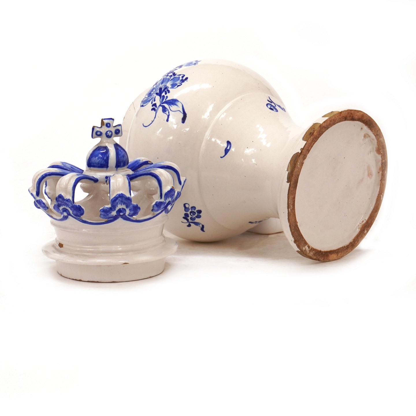 18th century faience potpourrivase made in Schleswig, Norhtgermany, period of Johann Rambusch, 1758-73. H: 33cm