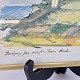 Beskrivelse: Indrammet tegning i oliekridt i gylden aluminiumsramme med landskabsmotiv af klitområde ved Lemvig. Tegningen viser udsigten til Bovbjerg fyr fra Trans Kirke, Vestjylland