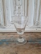 Beskrivelse: Gammelt mundblæst tragt formet glas med slebet måleenhed