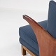 Lænestol i hhv. patineret nigerskind og blåt tekstil med messingsøm og stel af valnød.