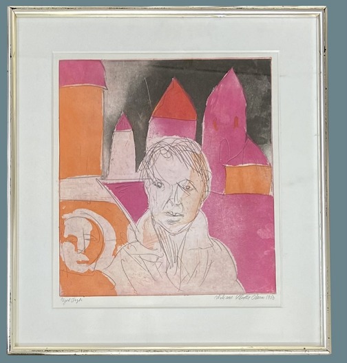 Beskrivelse: Litografi, Wiliam Skotte Olsen i sølvramme og passepartout.