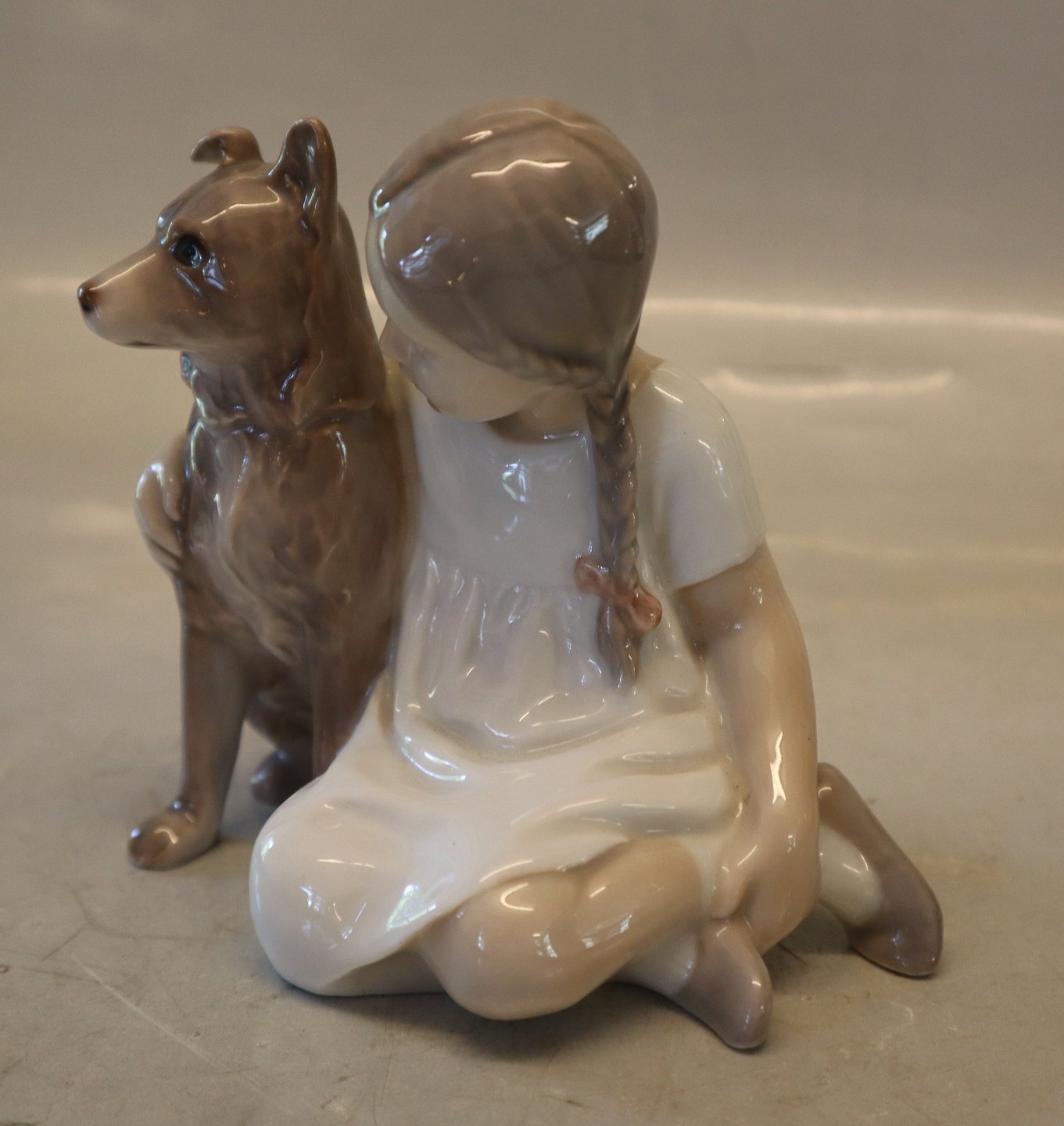 B&G figur 1973 Pige med fletninger og hendes hund 12 x 15 cm