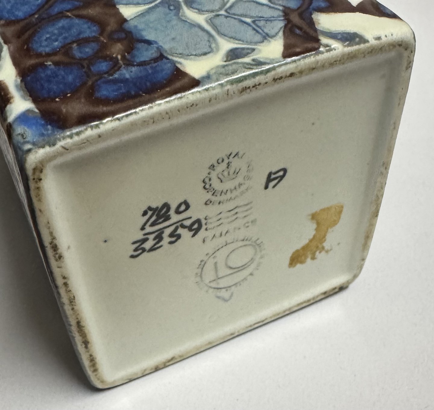 Beskrivelse: Johanne Gerber: Firkantet vase i fajance fra Aluminia fabrikken med modelnummer 3259. I god stand. 1. Sortering. H. 22,2 cm.