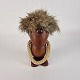 Beskrivelse: Håndskåret figur af teak, formet som en figur med hår, stor næse og reb som arme. Fra 1960'erne