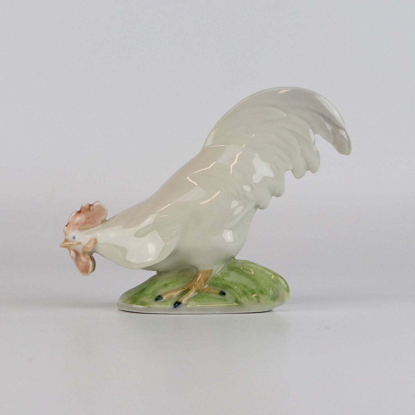 Beskrivelse: Kongelig figur i porcelæn med motiv af hvid hane nr. 1127