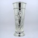 Beskrivelse: Høj sølvvase i tidlig dansk skønvirke stil, prydet med blomster og snoet sølvkrans.