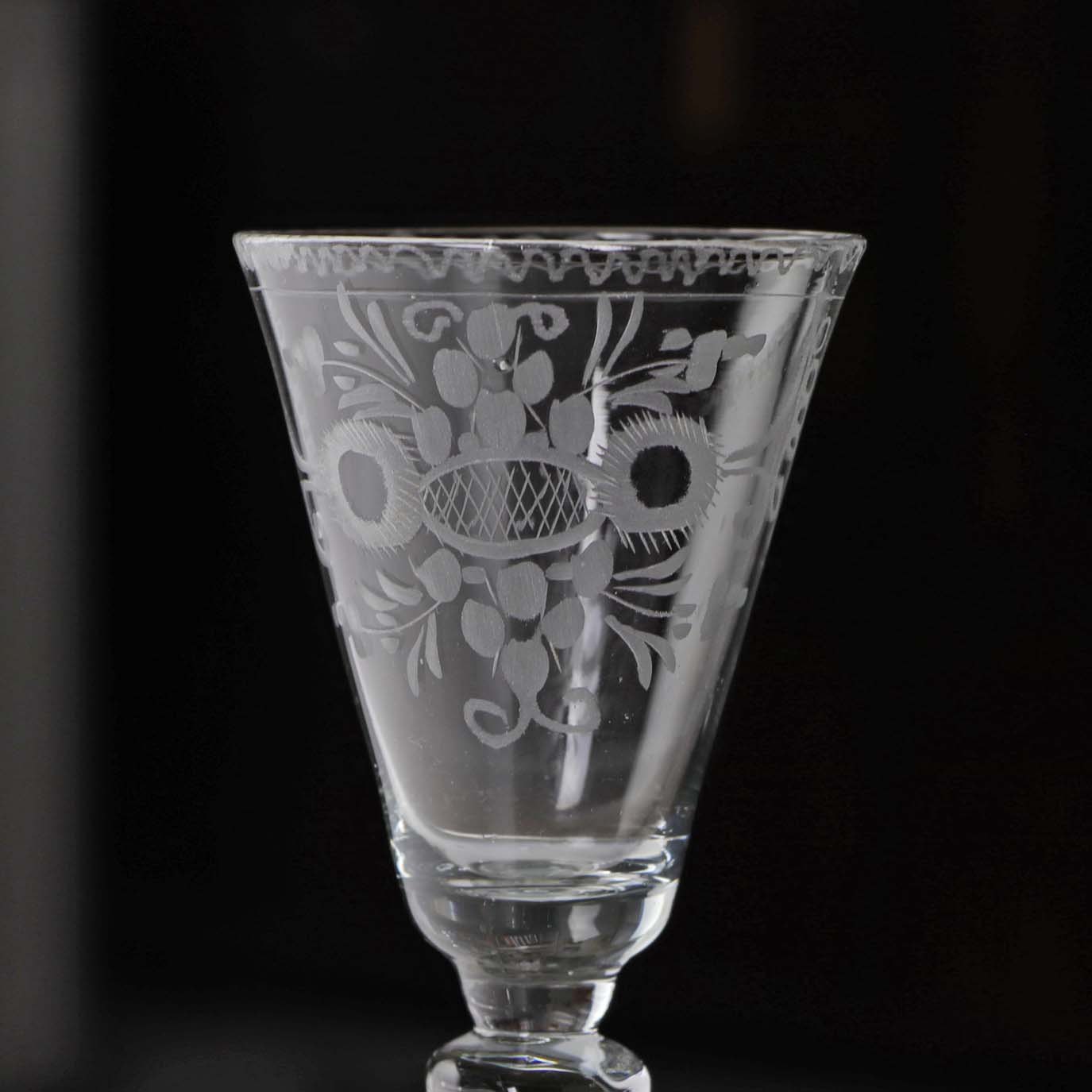 Beskrivelse: Antik schleisk Dresden/Laustein hedvinsglas med slebet mønster dateret til 1750?