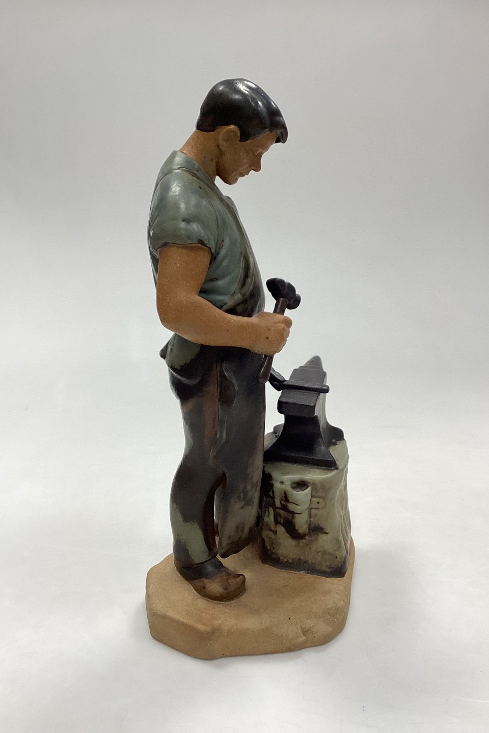 Description: Bing and Grondahl Stoneware Figurine - Blacksmith No. 2225. Designed by Axel Locher.