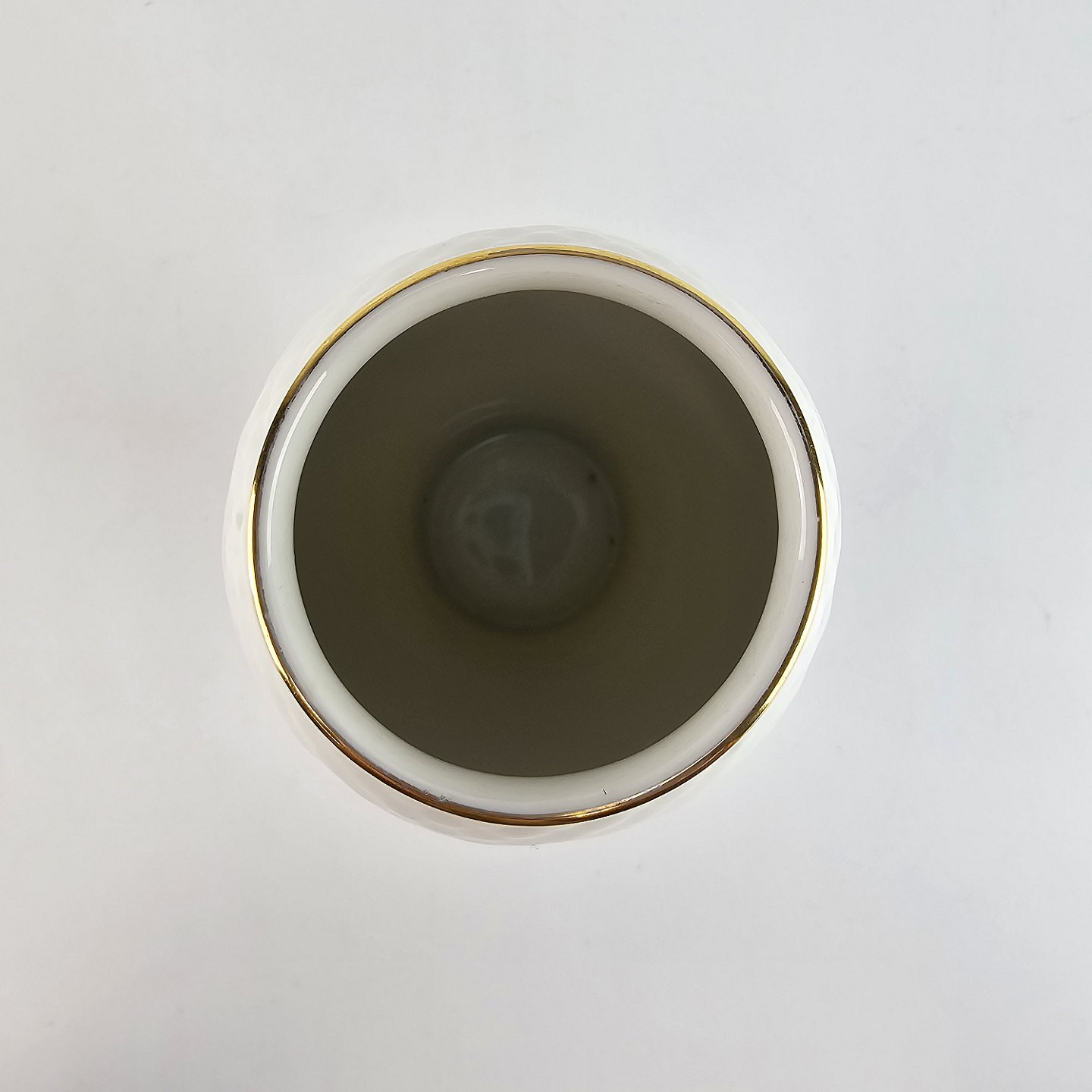 Hvidt porcelæn i skælform med dekoration af gule blomster og guldkant