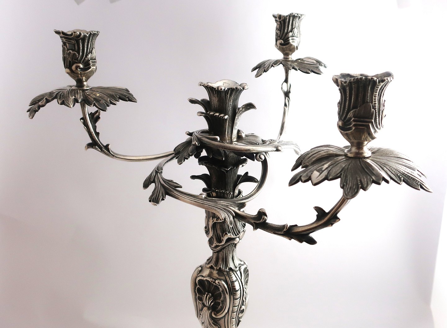 Beskrivelse: Michelsen. Sterling sølvkandelaber. Til fire lys. Højde 45,5 cm. Produceret 1913.