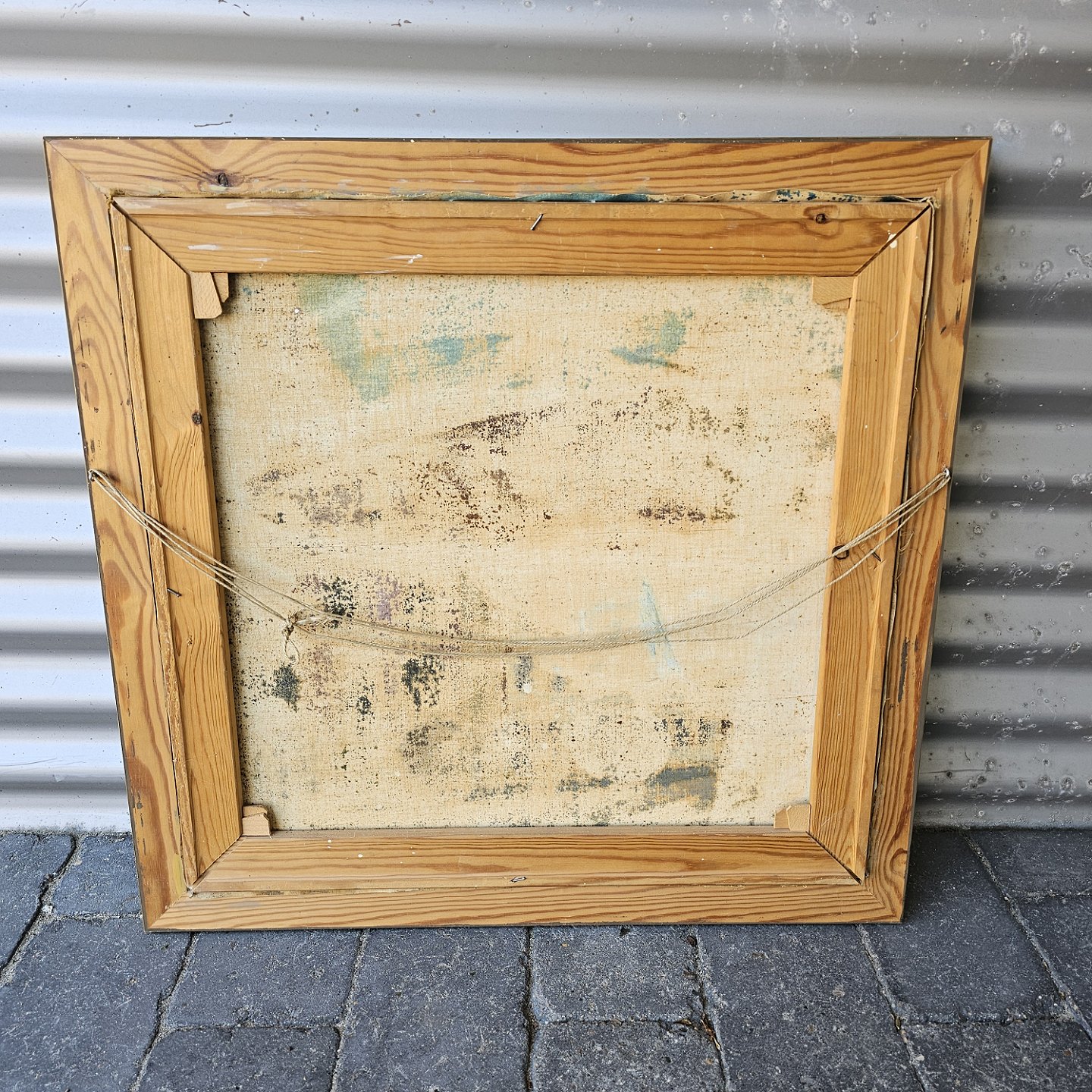 Beskrivelse: Maleri på lærred i gylden træramme med motiv af bygninger på Østerågade i Aalborg