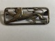 : Broche med løve, ca. 4 x 1,5 cm, stemplet, pæn brugt stand.
