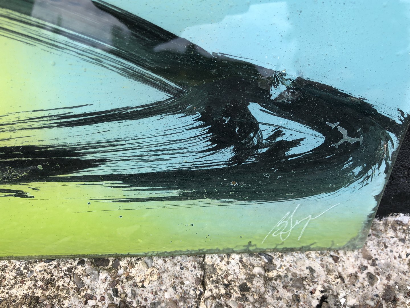 Beskrivelse: Branka Lugonja, Moderne glaskunst, glasmaleri fra Branka Lugonja's galleri St. Galla, Slagelse, Mål: 60x20 cm