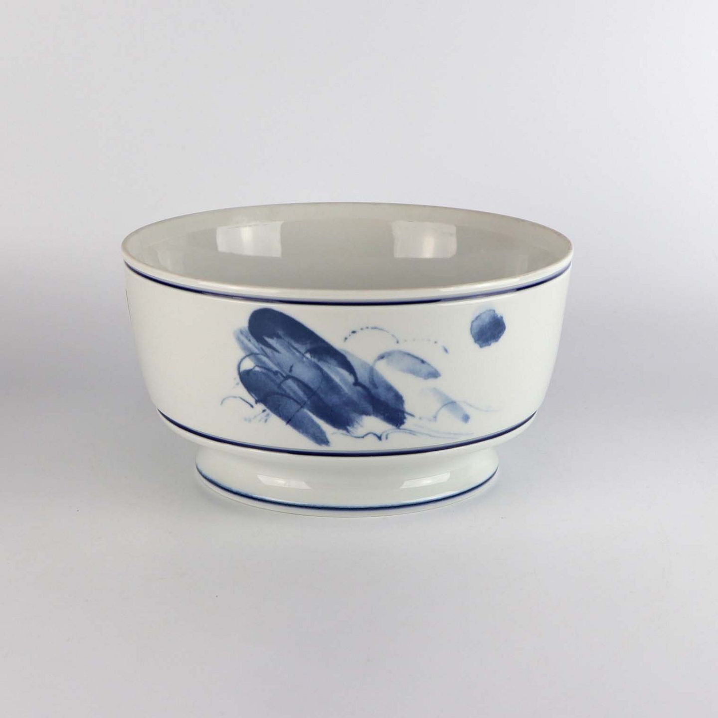 Kartoffelskål i glat hvidt porcelæn med abstrakt mønster i blå nuancer