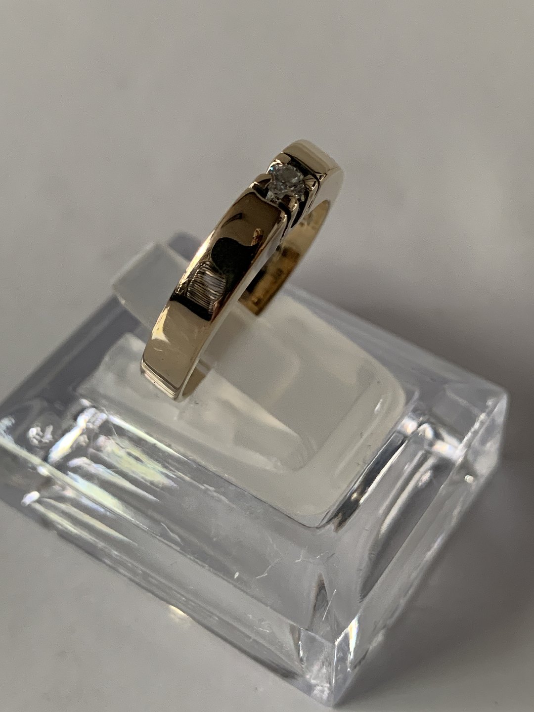 Alliancering i 14 karat guld, med en indlagt brillant. Størrelse. 58