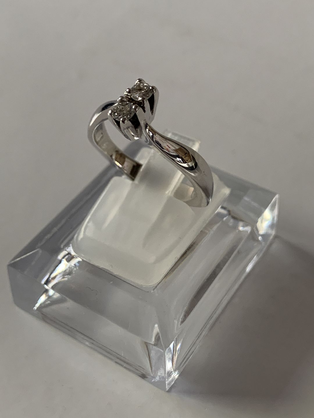 Damering med 2 brillanter i 14 karat hvidguld. Stemplet 585. Str. 54