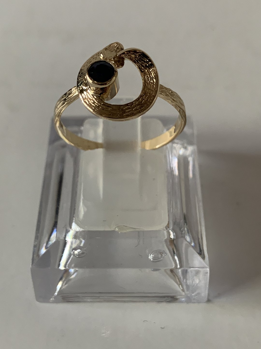 Description: Beautiful gold ring with inlaid amethyst, simple structure but still very nice ring. The stone sits in a nicely built house at the top of the ring, where the stone gives the ring its shine. This ring can be worn either alone or in combination with other rings.