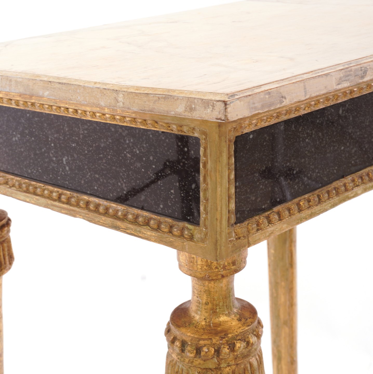 Beskrivelse: Gustaviansk konsolbord med marmoreret træplade og sarg med porfyr imitation