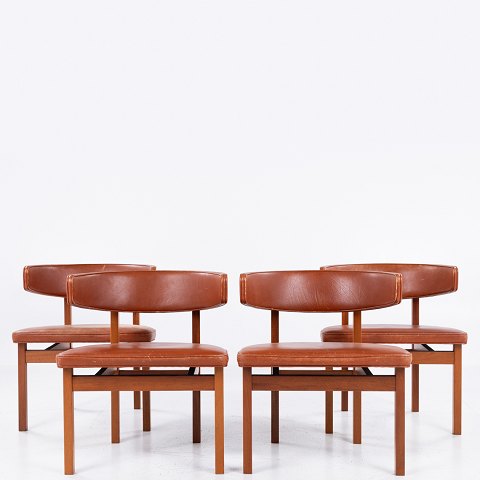 BM 3245 - Armchair in mahogany and original patinated reddish brown leather.