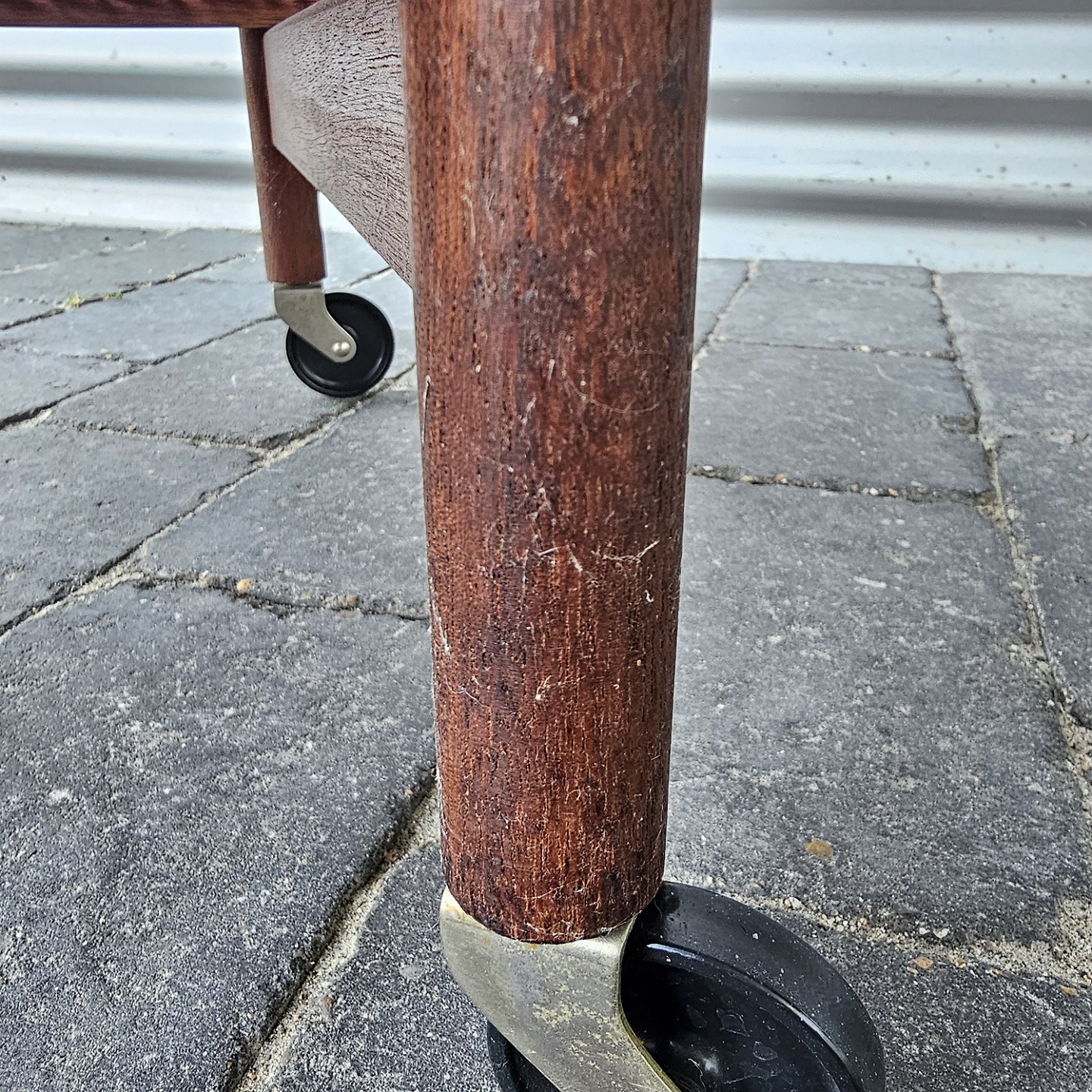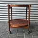 Beskrivelse: Rundt bakkebord i teak, specielt med hullet plade.