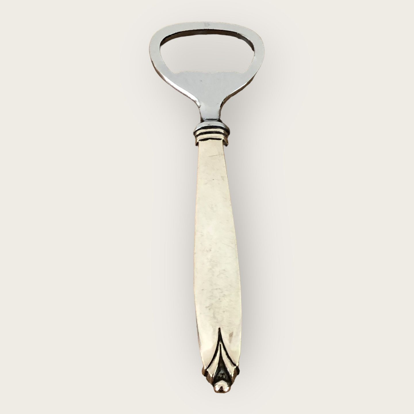 Description: Bottle opener in silver (three-tower, 830S) and steel, Has some peeling on the steel part at the top (see photo), length 12cm.