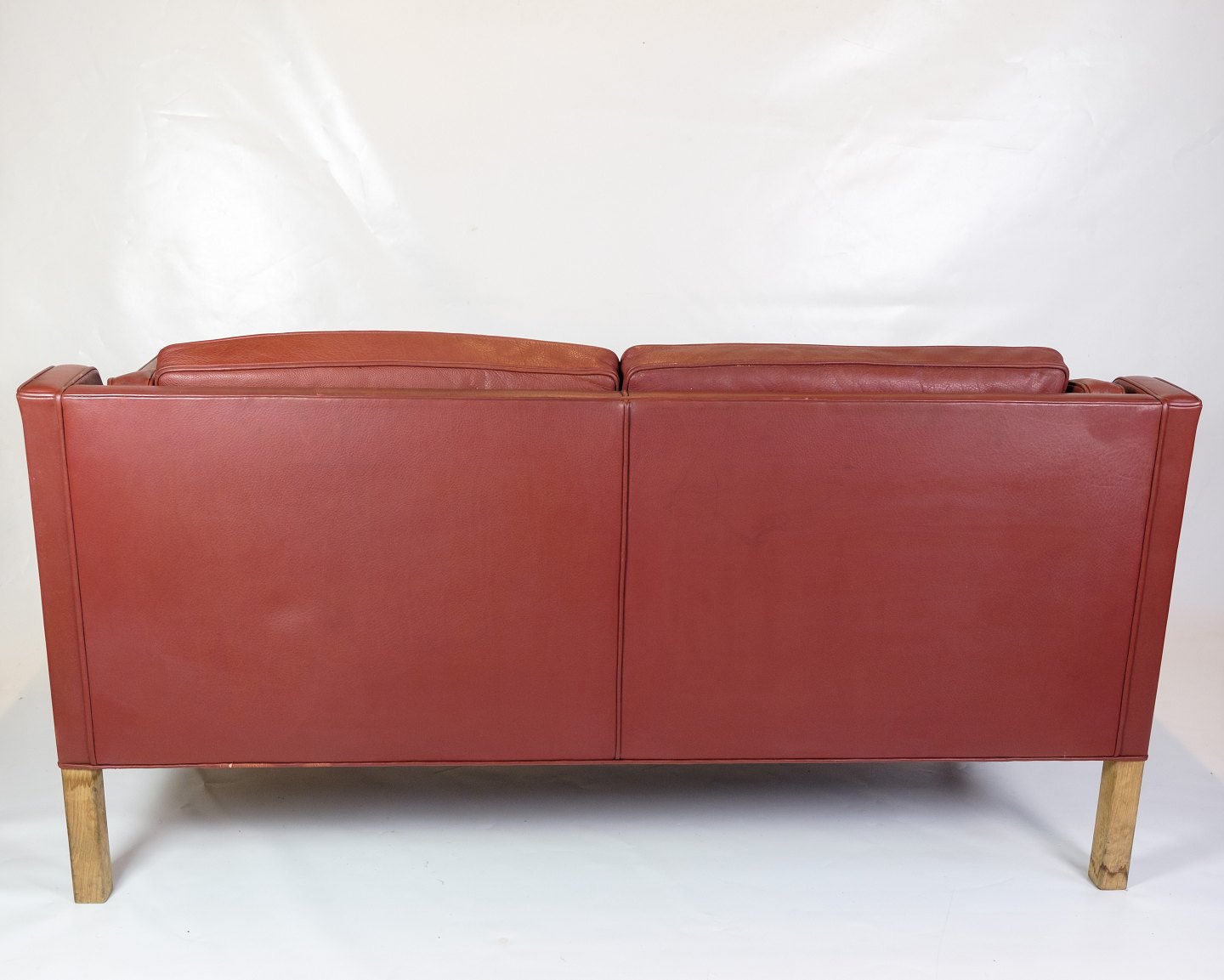Description: Set of 2 two-seater sofas, model 2212, designed by Børge Mogensen for Fredericia Stolfabrik in the 1960s. The sofas are upholstered in red leather and have oak frames. Their simple, timeless design combines comfort and aesthetics, making them classic examples of Mogensen's functional and stylish approach to furniture design.