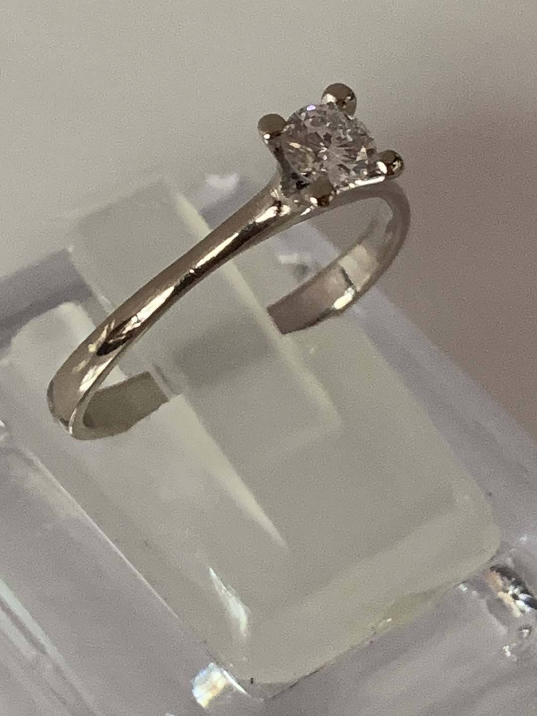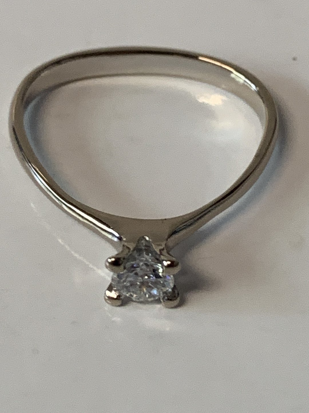 Damering 18 karat hvidguld, med diamant. Stemplet PKL 750, str. 51.