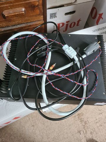 Beskrivelse: Forstærkersæt fra franske Lavardin Technologies bestående af 2 stk. mono effektforstærkere model MAP og forforstærker model C 62. Sættet er brugt sammen og omkring 10 år gammelt. Virker som det skal. Dog synes en anelse knasen når volumen opereres. Medføger strømførende kabler og originalt emballage til den ene MAP og C 62.