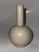 Description: Ceramic vase from Arne Bang. Round body and long neck. Covered by a light cream glaze. In good condition. Factory mark with artist monogram on the bottom. H. 15.5 cm.
